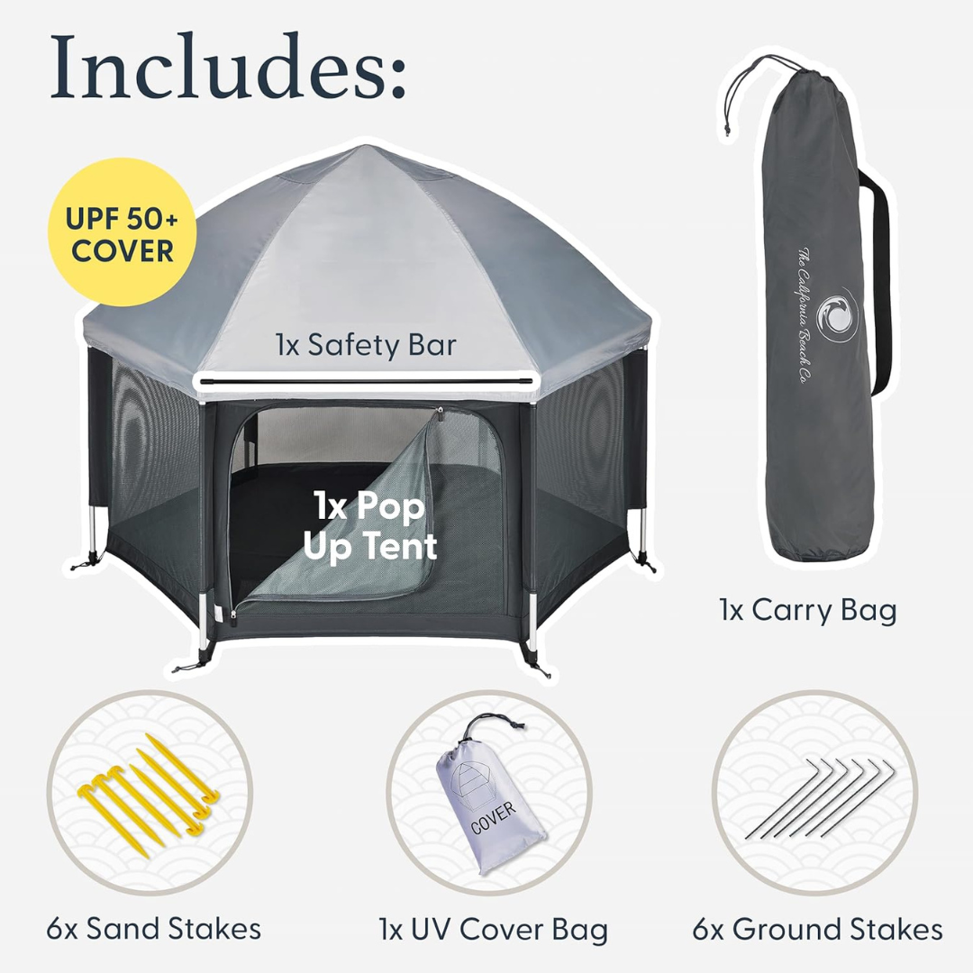 Designed with a UPF50+ UV canopy, sturdy rails with a secure safety lock, and breathable mesh for visibility, ensuring your little one stays protected and safe in any environment.