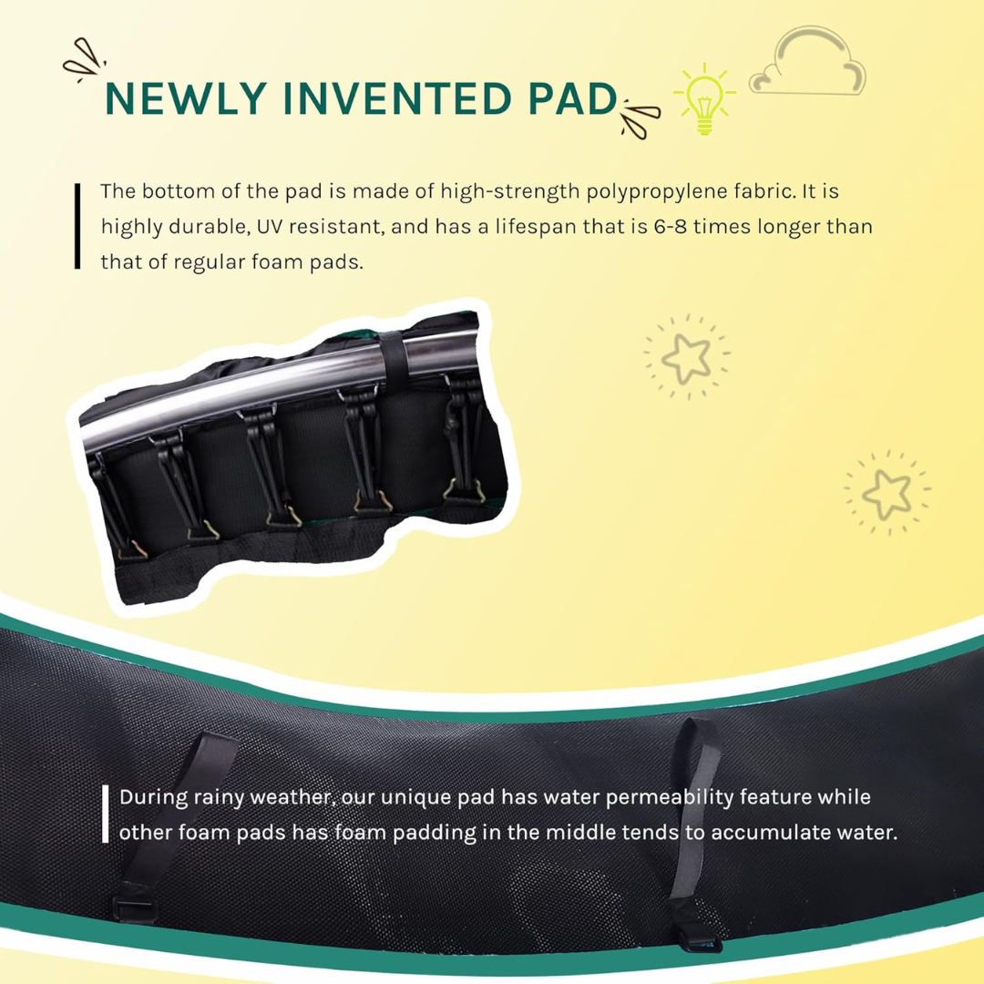 Made from high-strength polypropylene, the newly designed pad is UV-resistant, water-permeable, and built to last 6–8x longer than regular foam pads. Secure bottom straps keep the pad firmly in place.