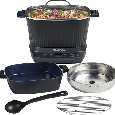 Cook family-sized meals with ease using the 7.5QT capacity, perfect for two whole chickens or 6 lbs of pork in one compact, space-saving design. This all-in-one appliance includes a skillet, wire rack, glass lid, ladle, non-stick cooking pot and paddle, steamer, rice basket, and a recipe book—everything you need for versatile meal preparation.