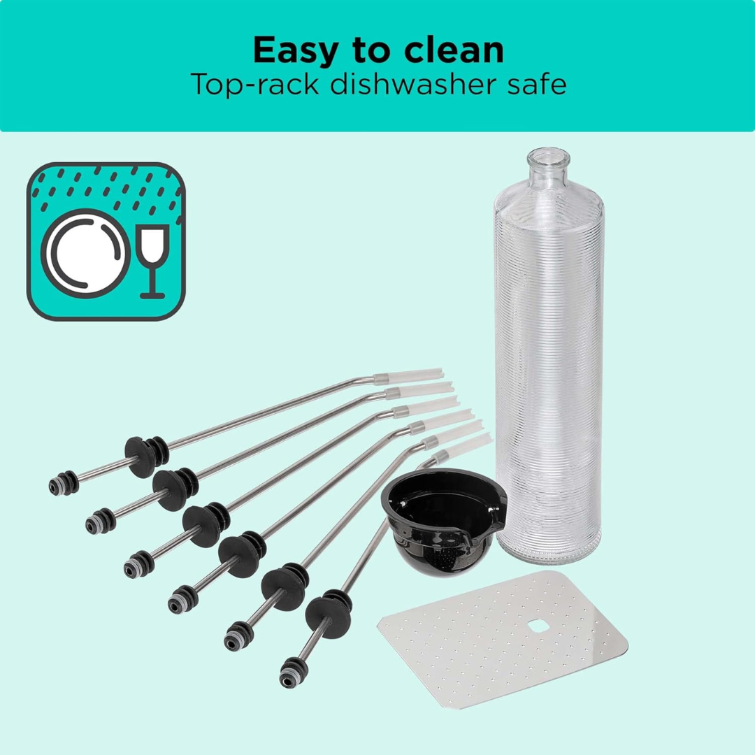 Dishwasher-Safe Parts – The stainless-steel straws, drip tray cover, water bottle, and capsule holder are top-rack dishwasher safe.