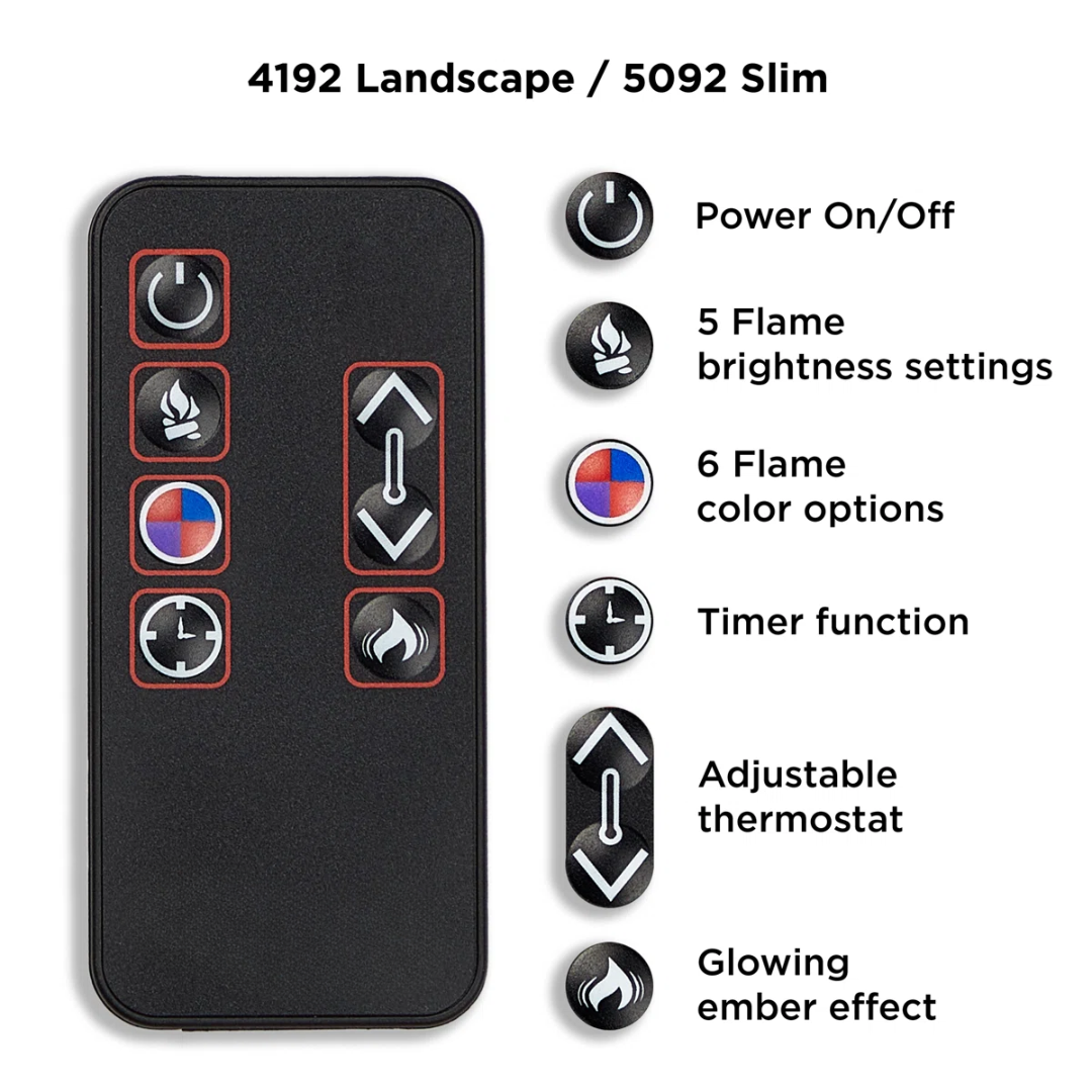 6 flame colors & 5 brightness levels for customizable ambiance