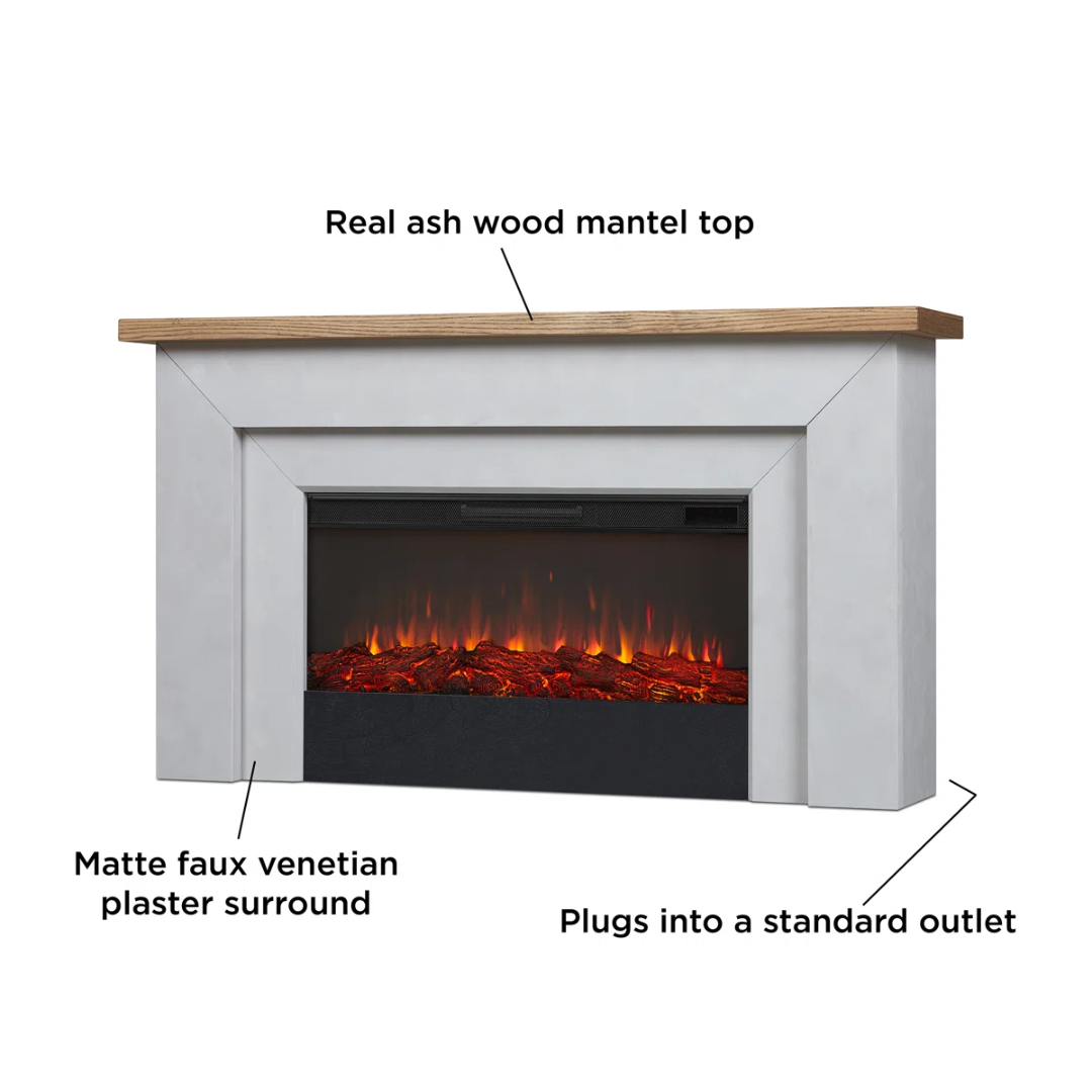Add warmth and style to your living space with this elegant widescreen electric fireplace. Its realistic LED flames offer six color options and five brightness levels, creating a cozy glow without the need for vents or chimneys. Perfect for rooms up to 1,000 sq. ft., it features adjustable thermostat settings, a safety shut-off, and a timer for effortless comfort. The matte, plaster-inspired surround and real wood mantel bring a sophisticated touch to any modern home or office.